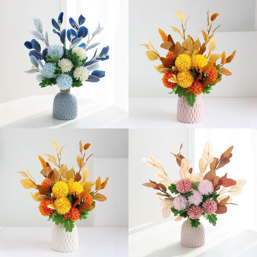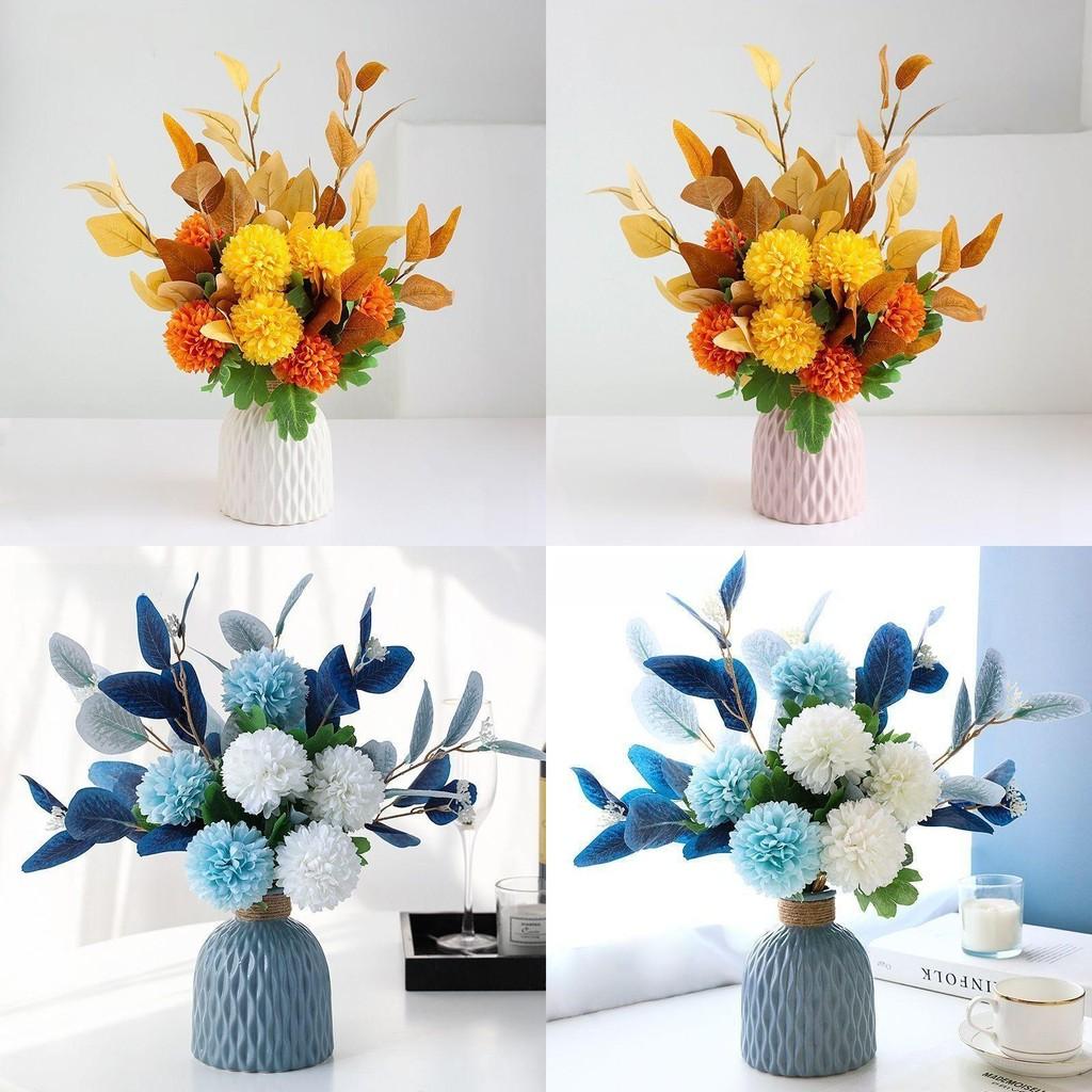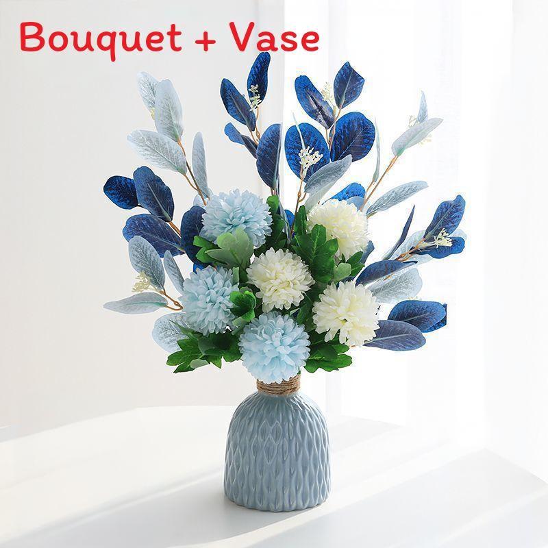 Artificial Hydrangea Flower With Vase Arrangement For Living Room Decor