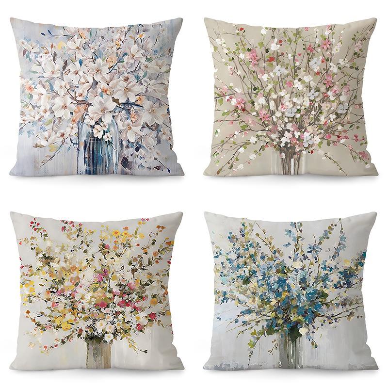Ваза в стиле масляной живописи Декоративная наволочка для спальни Гостиной Квадратная подушка Наволочка