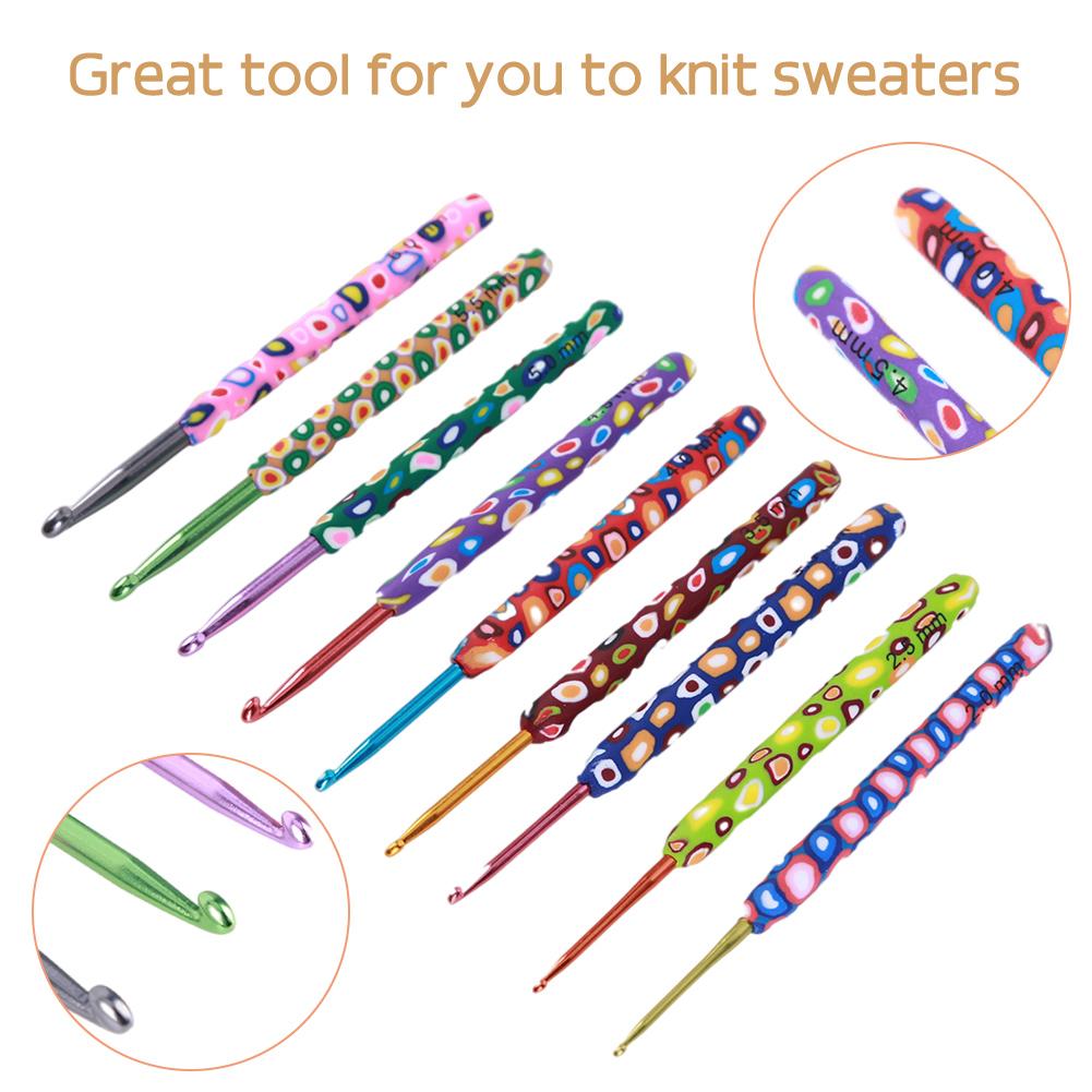 Набор из 9 цветных мягких алюминиевых крючков для вязания, спицы 2-6 мм, крючки для плетения, швейные иглы, инструмент для рукоделия своими руками