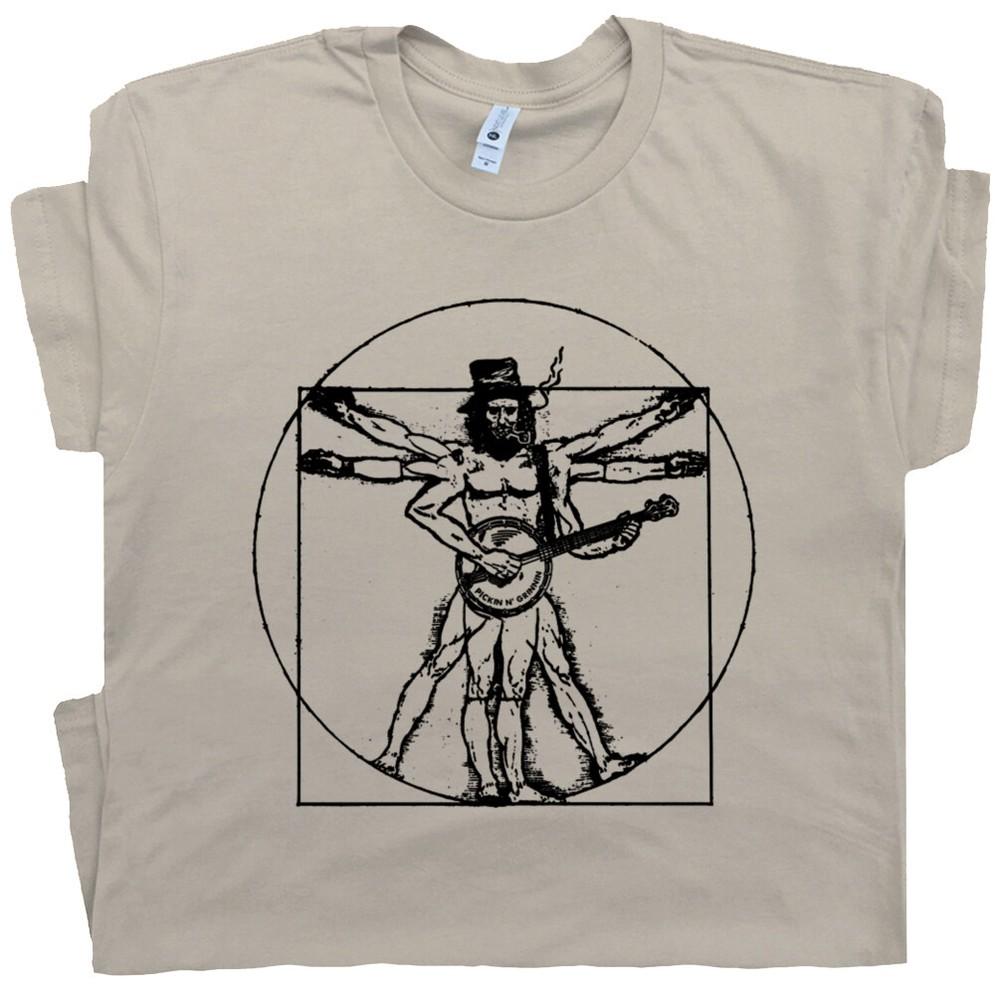 Banjo T Shirt Bluegrass Fiddle Funny Cool Vitruvian Man Women Mandolin Guitar