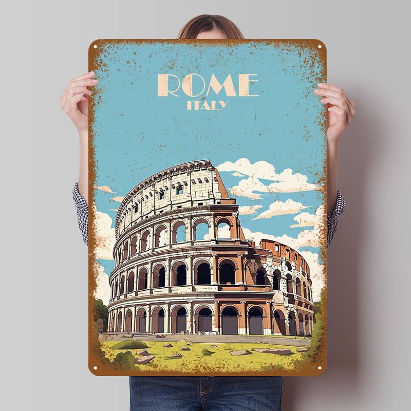 Колизей Рим Италия Металлические знаки Транспортный плакат Настенное искусство Настенная роспись Индивидуальный жестяной знак для украшения стен Декор комнаты