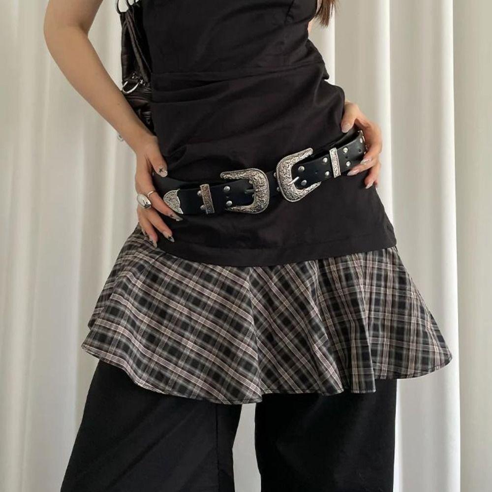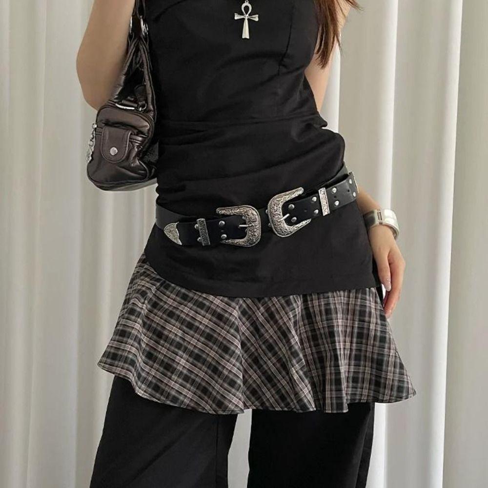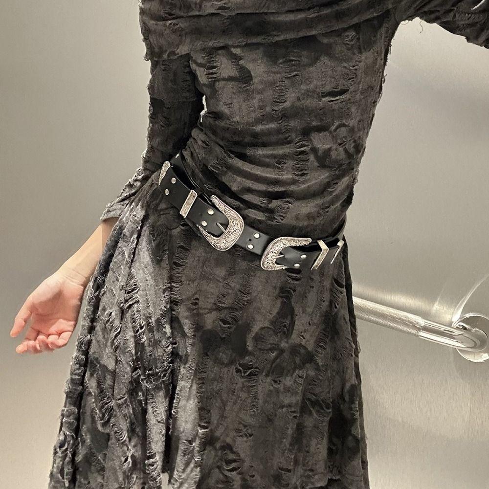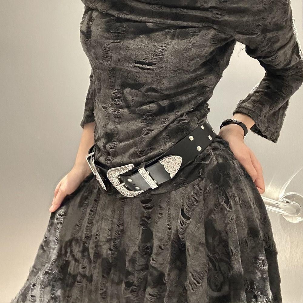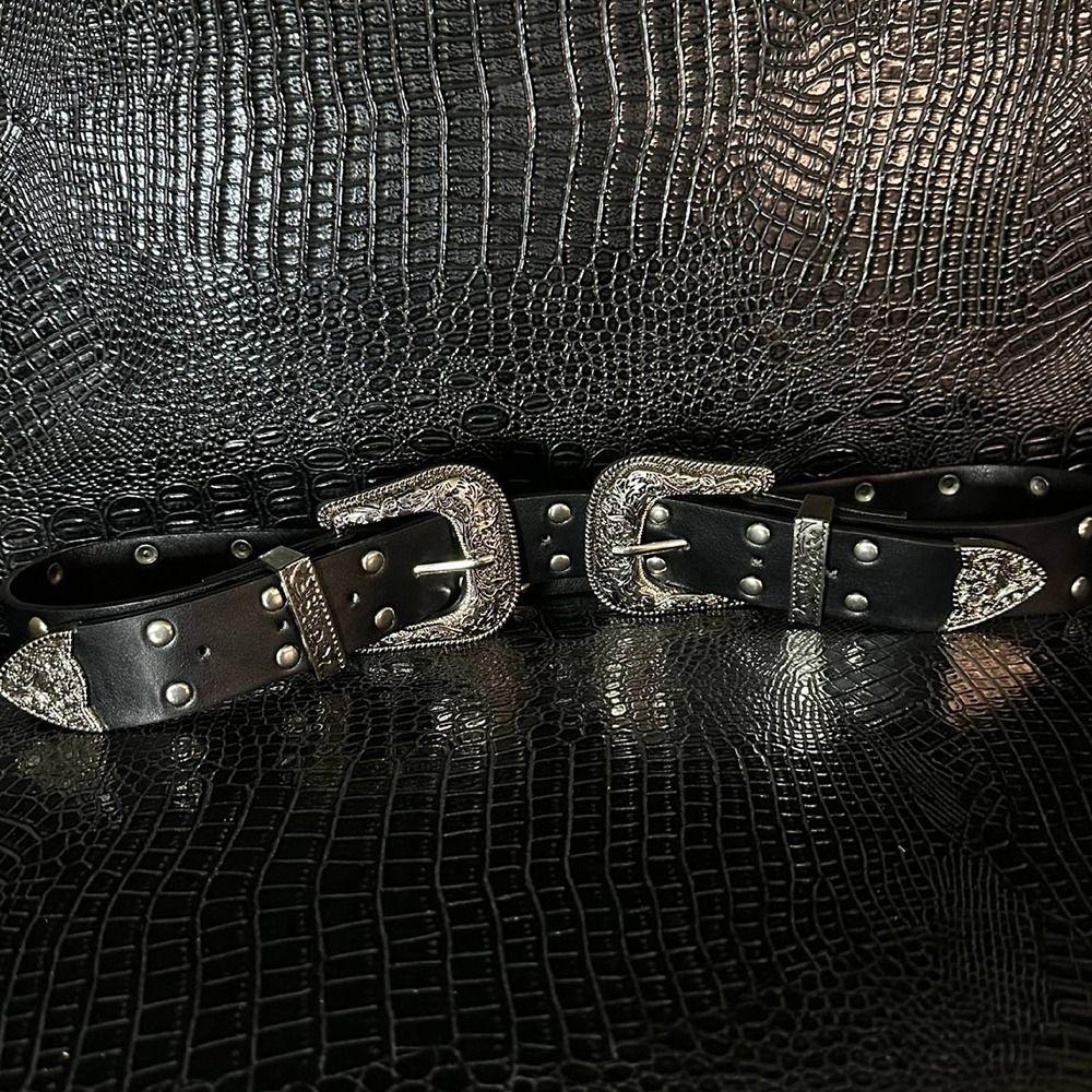 Черный женский ремень с заклепками Винтажный ремень для платья и джинсов Ретро кожаный пояс на талию Аксессуары для талии