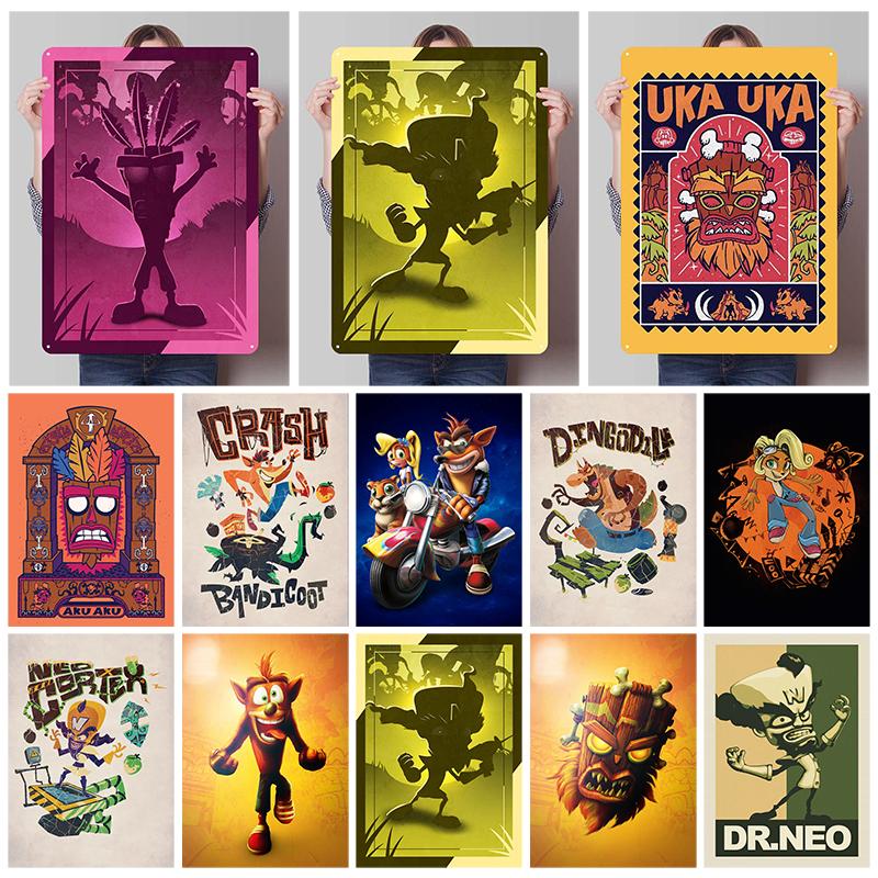 Постеры Crash Bandicoot Классическая игра Металлические таблички Настенное искусство Мурал На заказ Жестяные таблички для геймеров Украшение игровой комнаты Ретро