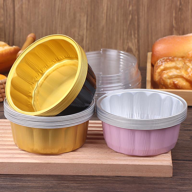 10 Наборов Алюминиевая Фольга Контейнер для Торта 250мл Формы для Торта Вкладыши С Крышками Жаростойкие Фольгированные Формочки для Выпечки Форма для Торта Кухонный Инструмент