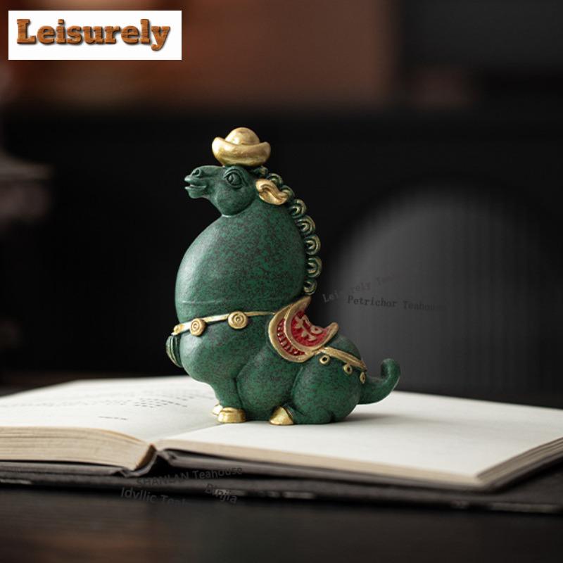 Зеленый Песчаник Привлекающие Богатство Лошади Чайный Питомец Эстетические Чайные Игры Чайная Фигурка Игровые Игрушки Чайная Статуэтка Украшения Принадлежности для Кафе