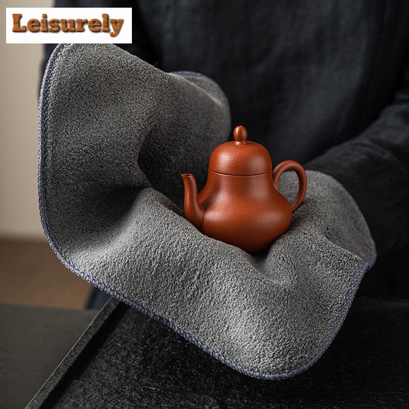 Double Sided Coral Velvet Tea Towel Thickened Absorbent Soft Kitchen Cleaning Cloth Towel Table Mat Pad Coaster Tea Accessories