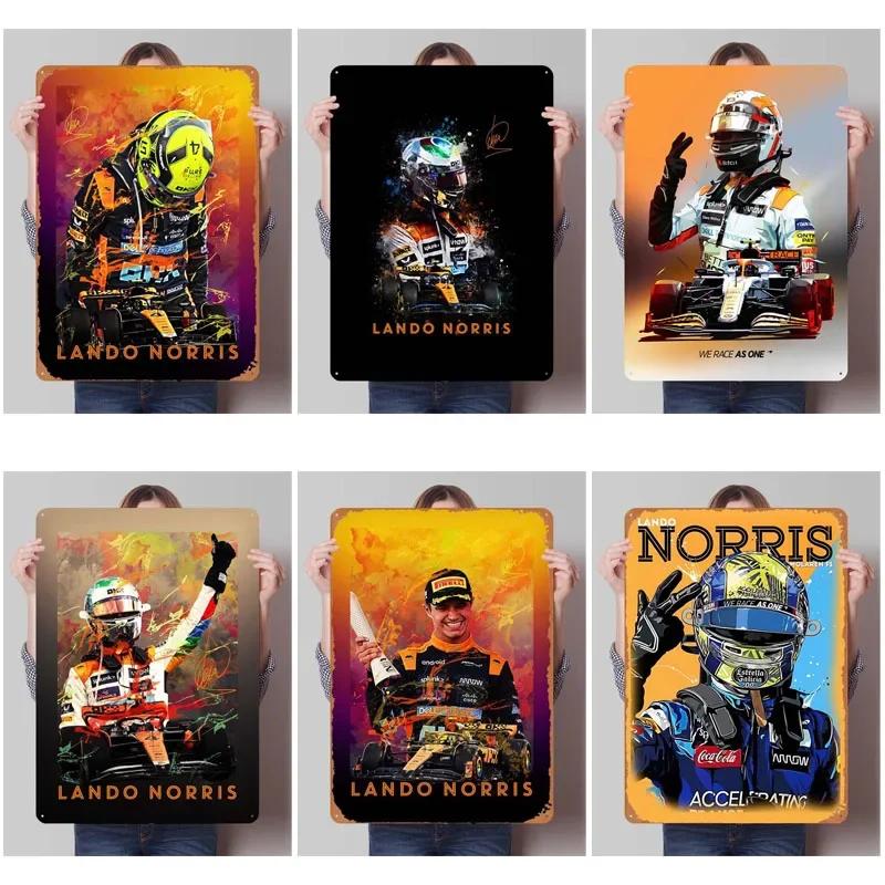 Металлическая табличка Ландо Норриса Гоночные постеры Декоративные металлические пластины Ретро жестяная табличка для настенного декора Украшение игровой комнаты