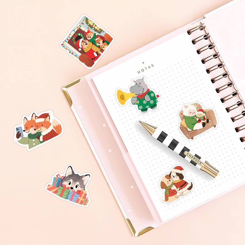 50 Милых Мультяшных Креативных Наклеек с Животными на Рождество для Украшения Чехлов для Телефонов, Бутылок для Воды, Рабочих Столов и Дневников 1. Использует: Этот набор из 50 наклеек на рождественскую тематику отличается очаровательным дизайном и может быть использован для украшения чехлов для телефонов, бутылок для воды, журналов и рабочих столов.. Покрытие делает его подходящим для повседневного использования. Съемный клей не оставляет следов, что облегчает повторное нанесение. Сочетая праздничное настроение с элементами DIY-персонализации, он подходит для всех возрастов.