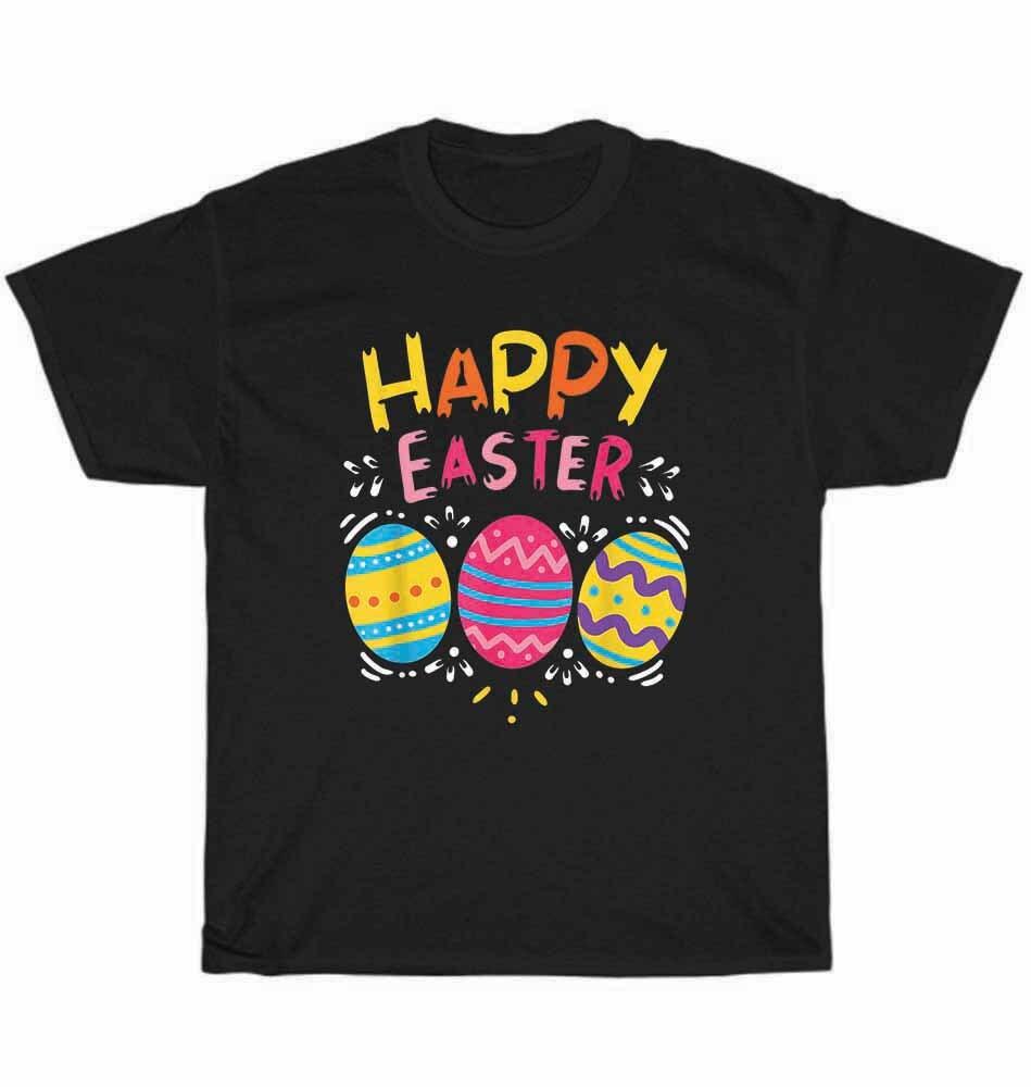 NEW Happy Easter Day Bunny Colorful Easter Eggs Hunting T-Shirt Unisex Tee Gift