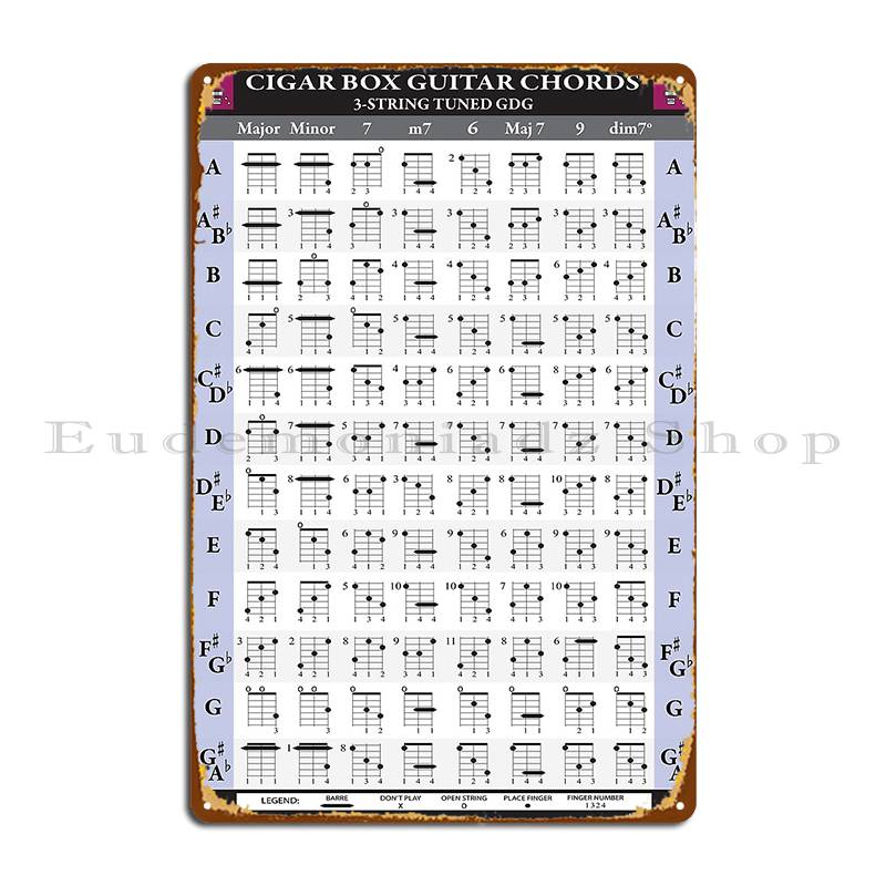 3-струнная гитара из сигарной коробки Аккорды Металлическая табличка Постер Бар Персонализированная Гостиная Стена Пещера Гараж Жестяная вывеска Постер
