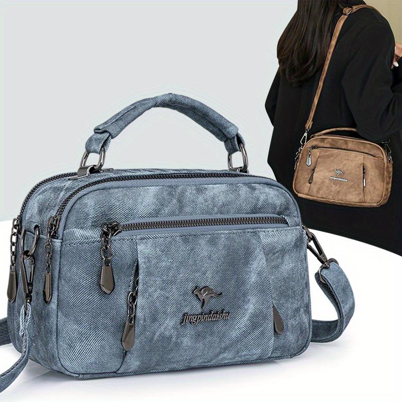 Женская винтажная наплечная сумка, сумка-кроссбоди с отделениями на двойной молнии, женская парусиновая сумка-кроссбоди, сумочка с несколькими карманами на молнии