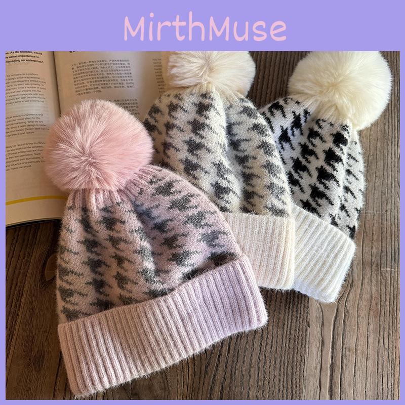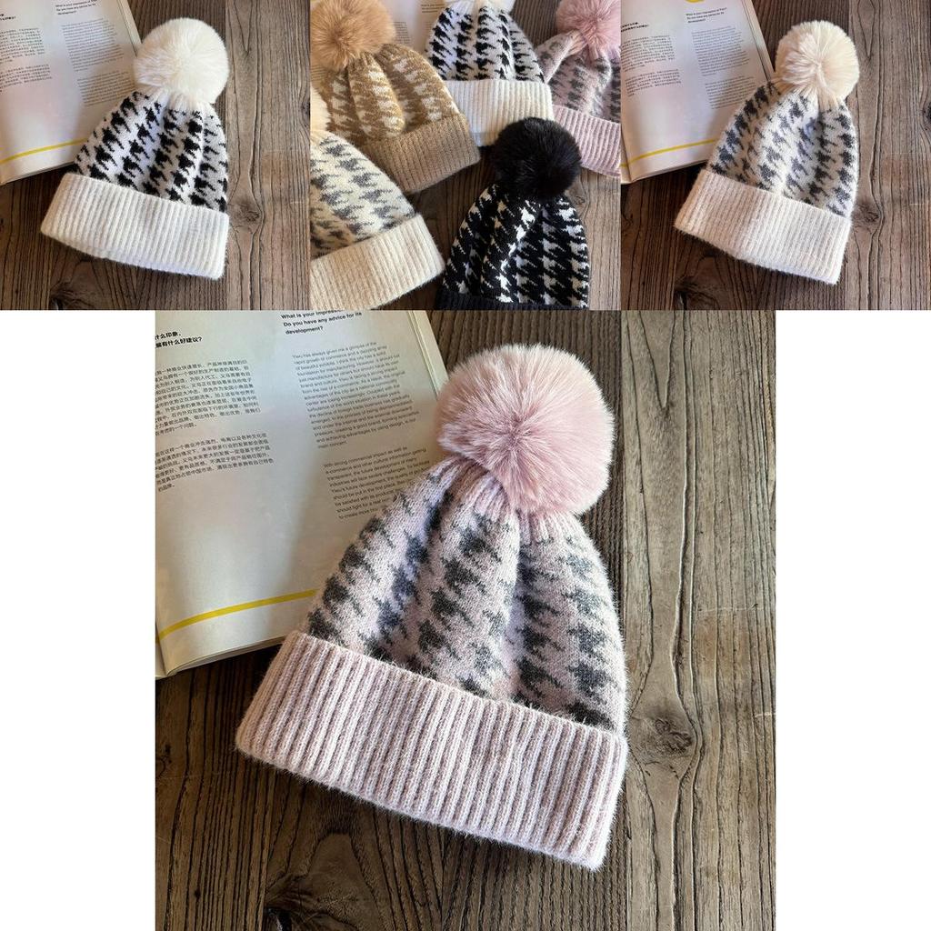 Knit Hat For Women With Vintage Houndstooth Pattern And Warmth For Autumn Winter Fashion
