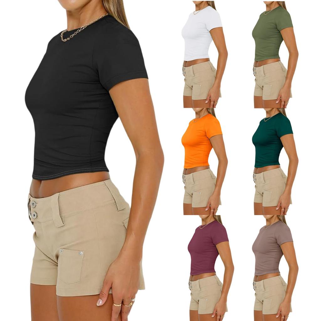 Женские футболки Летние топы С коротким рукавом Кроп-топы Приталенные Одежда для тренировок в зале — купить товар онлайн с бесплатной доставкой по всему миру!