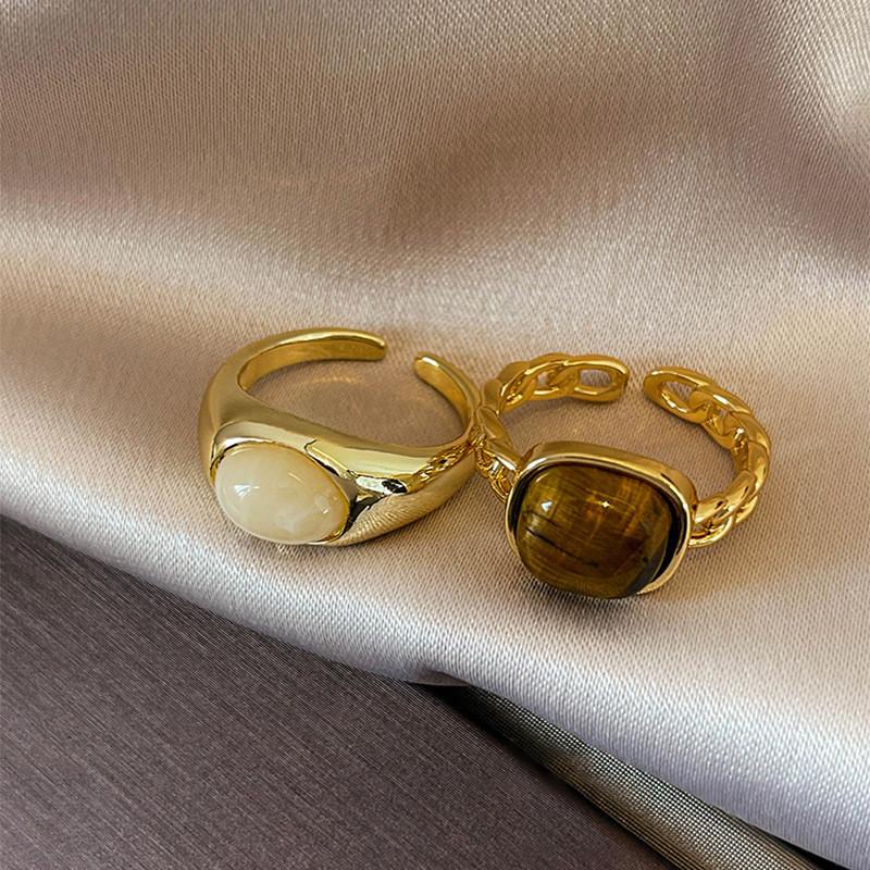 Винтажное французское кольцо с открытой шинкой из натурального камня для женщин, уникальный дизайн, регулируемый модный аксессуар