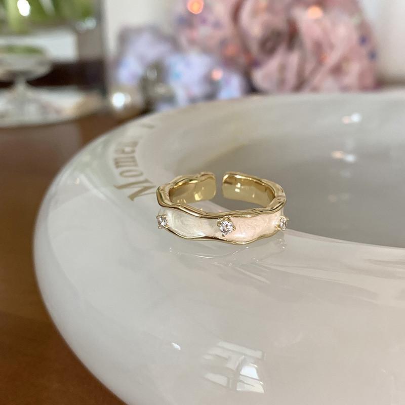 Модное регулируемое открытое кольцо в корейском стиле с уникальной капельной глазурью и стразами