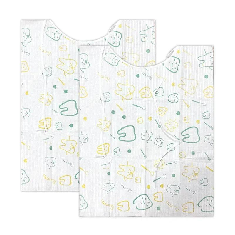 Nigf 100 Units/Pack Disposable Dental Bibs With Individual Ribbons, Blue Waterproof Leaves