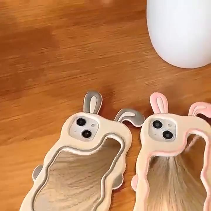 Милый чехол для телефона-зеркала с кроличьими ушками для iPhone 16 15 14 Plus 13 12 11 Pro Max, ударопрочный силиконовый чехол — купить товар онлайн с бесплатной доставкой по всему миру!