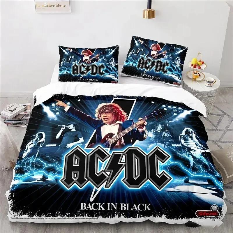 Комплект постельного белья Rock Band Ac Dc с 3D-печатью, пододеяльник для спальни, одинарный, полуторный, королевский размер, покрывало, домашний текстиль, 3 предмета