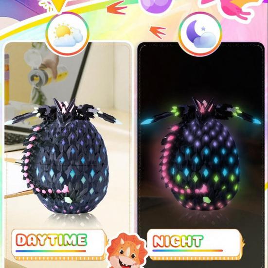 Сложная 3D-печать с радужной текстурой: Используя передовую высокоточную технологию 3D-печати, яйцо дракона демонстрирует яркую радужную цветовую схему в сочетании с детализированной трехмерной текстурой.. Этот привлекательный дизайн очаровывает подростков, мальчиков и взрослых, делая его выдающимся декоративным элементом в любой обстановке.