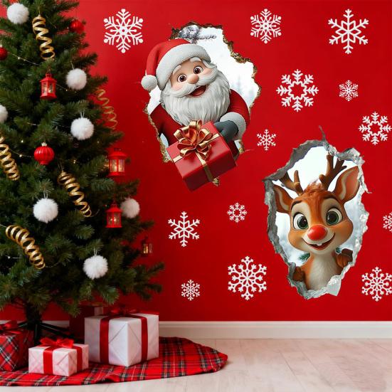 Прочный материал ПВХ: Изготовленная из высококачественного ПВХ, эта наклейка на стену гарантирует долговечность и яркие цвета.. Его прочный состав устойчив к износу, обеспечивая сохранность декоративного дизайна с течением времени.. Идеально для поддержания свежего и праздничного вида на протяжении всего сезона праздников без выцветания или шелушения.