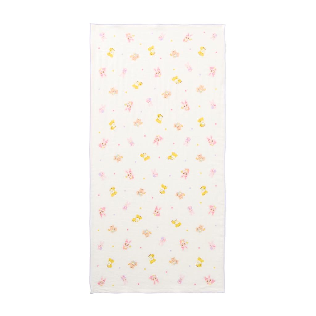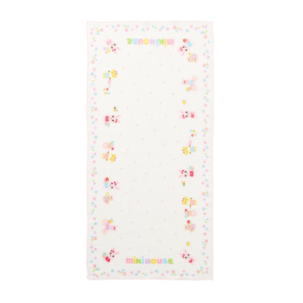This set of two MIKI HOUSE gauze towels is handy no matter how many you have. Recommended for baby preparations, baby showers, and gifts. They feature cute baby patterns such as MIKI HOUSE's popular Baby Poochie, Baby Usako, and Baby Animal. Use them to cover or wrap your baby during bath time. The MIKI HOUSE gauze towels have a double gauze structure that makes them soft against the skin. This two-pack is a handy item that you can have in large quantities. They are less bulky than regular towels, are thin and light, and dry quickly, making them convenient to carry around.