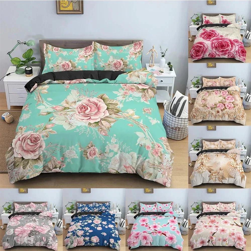 Постельное белье с цветочным узором, комплект пододеяльника, покрывало, комплект постельного белья, индивидуальный пододеяльник с наволочкой, королевский размер