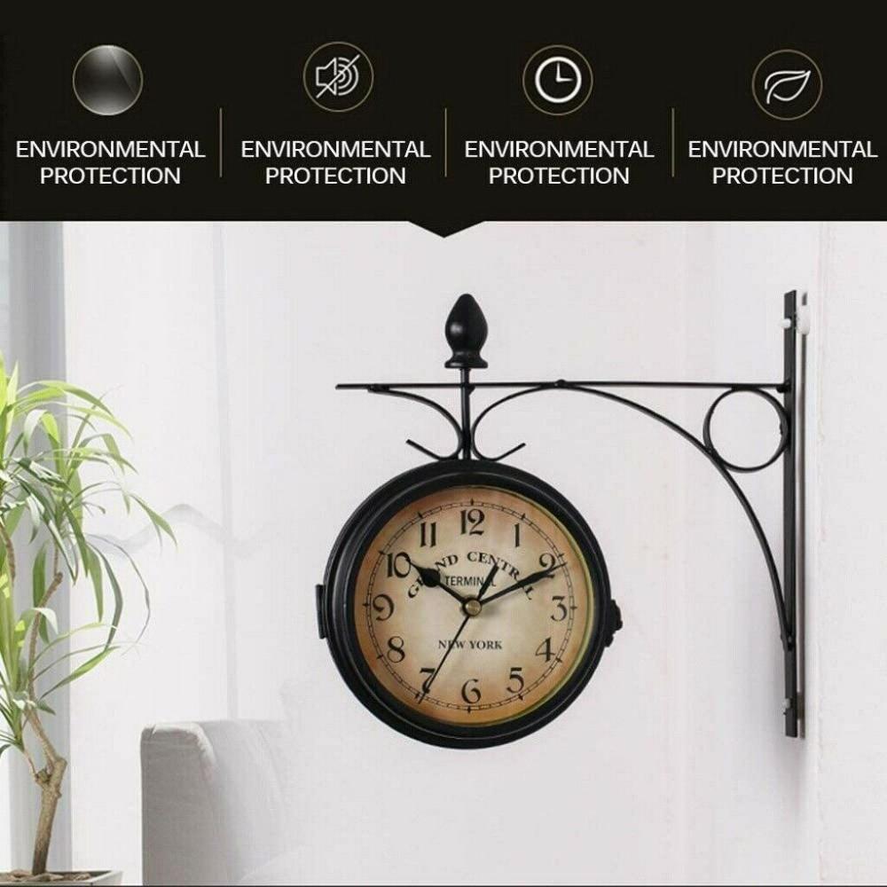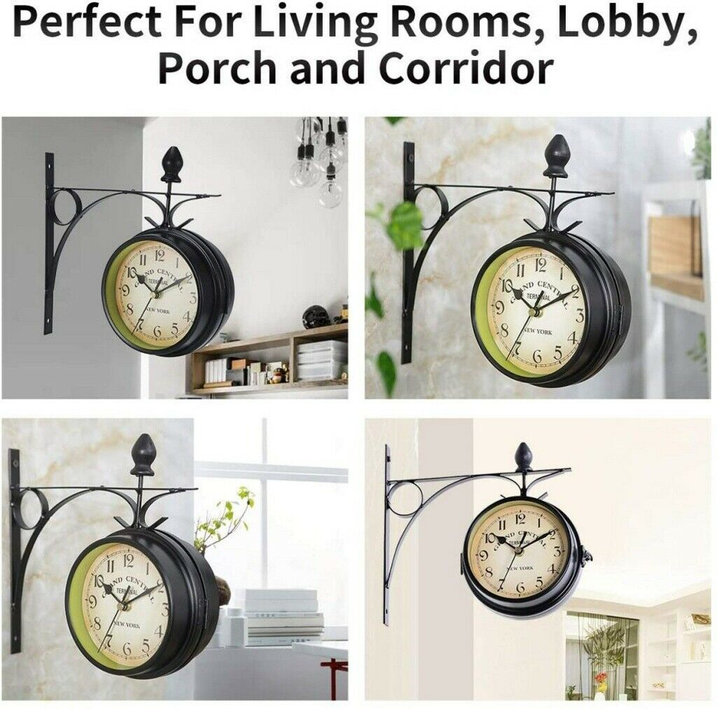 Grand Central Garden Decoration Wall Mount Double Sided Wall Clock Outside Metal Clock Bracket