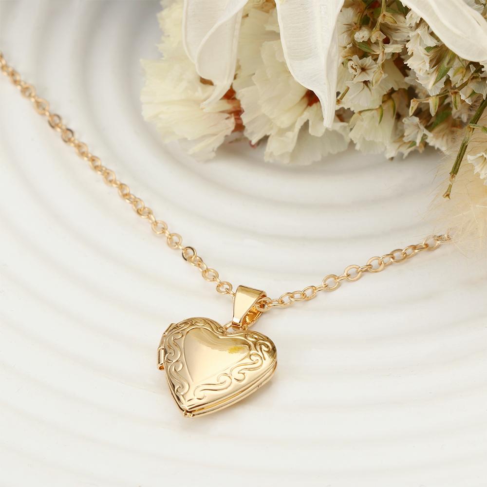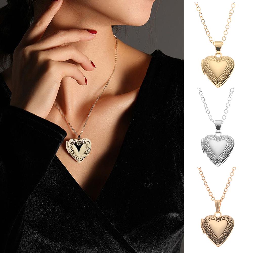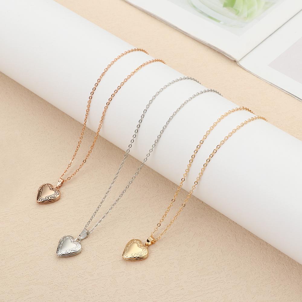 Gift Forever and Always Carved Chain Friend Necklace Photo Picture Locket Pendant Heart Shaped