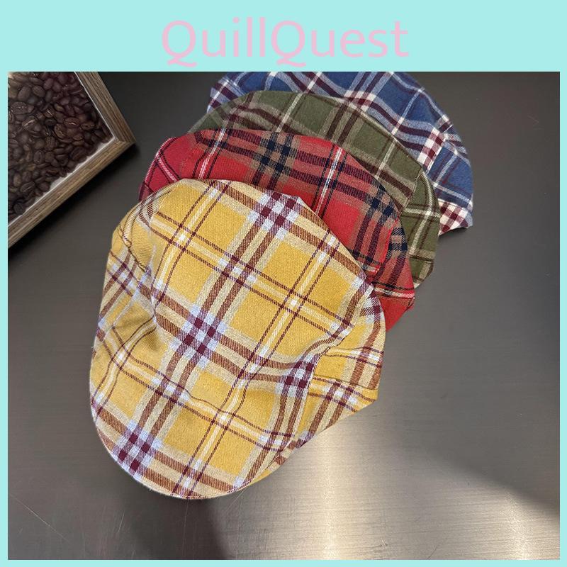 Винтажный японский берет в клетку для женщин с коротким козырьком, повседневный модный аксессуар