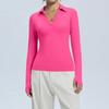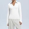 Женская мода Повседневный однотонный топ с V-образным вырезом и длинным рукавом на пуговицах
