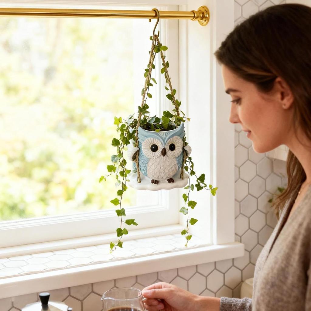 Cute Flower Pot - Swinging Owl Resin Home Decor, Animal Flower Pot, Suitable For Indoor Plants, Indoor And Outdoor Gardens, Terraces, Porches, Etc.