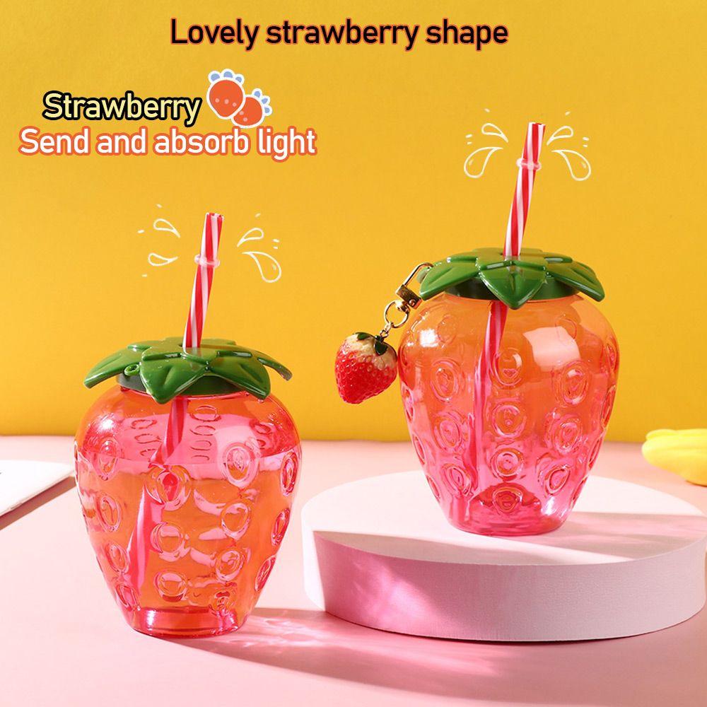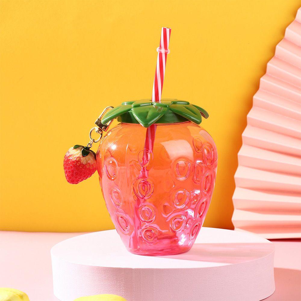 Градуированная пластиковая чашка для чая, молока, кофе, мультяшная, для напитков, бутылка для питьевой воды с крышкой, чашка с соломинкой в виде клубники