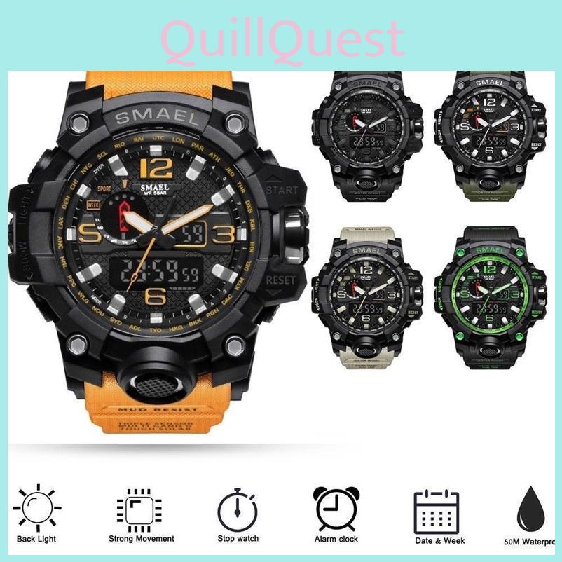 Прочные мужские военные часы Smael с люминесцентной подсветкой, будильником, спортивные наручные часы, прочные, водонепроницаемые 50 м