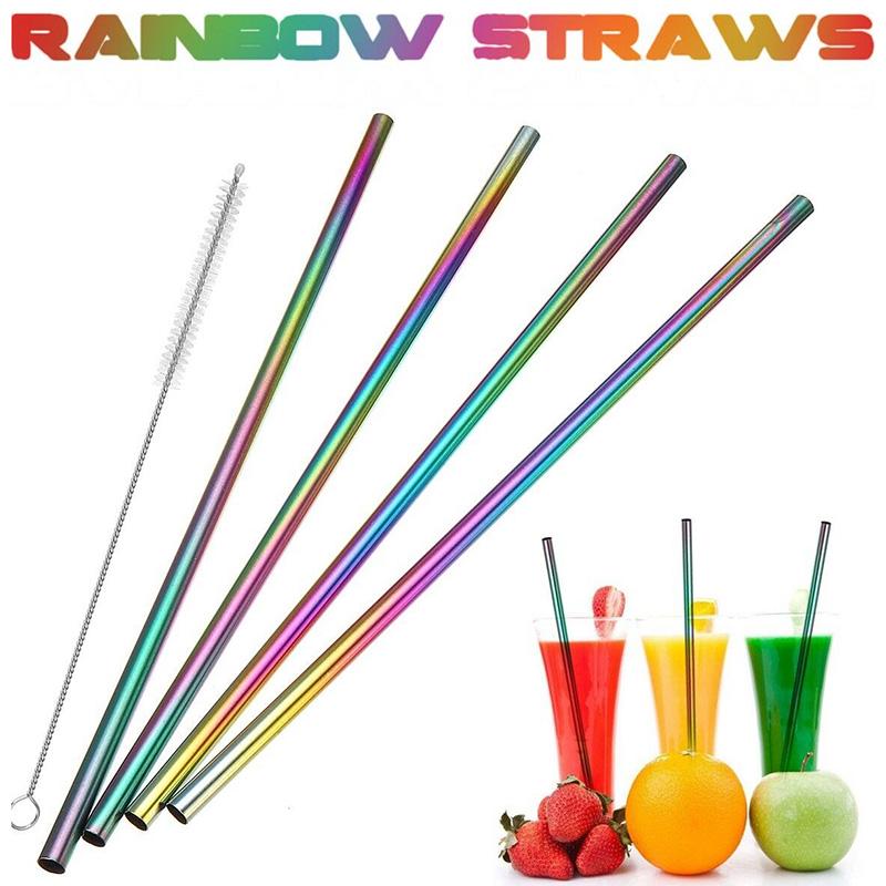 Радужная соломинка из нержавеющей стали, соломинка для напитков, металлическое очиститель для питья, многоразовый барр