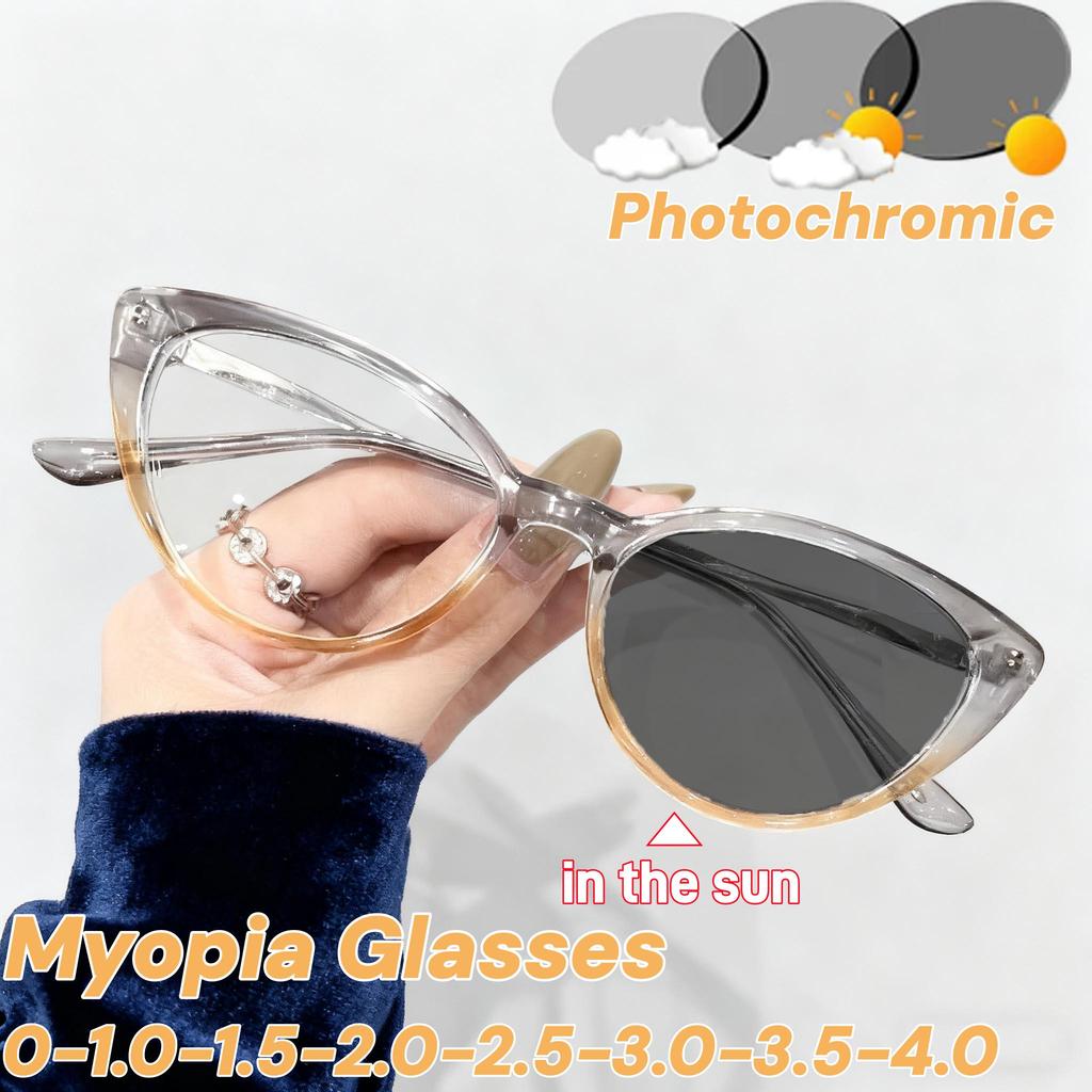 Фотохромные очки для близорукости с защитой от синего света для женщин и мужчин, стильные очки «кошачий глаз», меняющие цвет на улице, для близоркости, с защитой от УФ-лучей