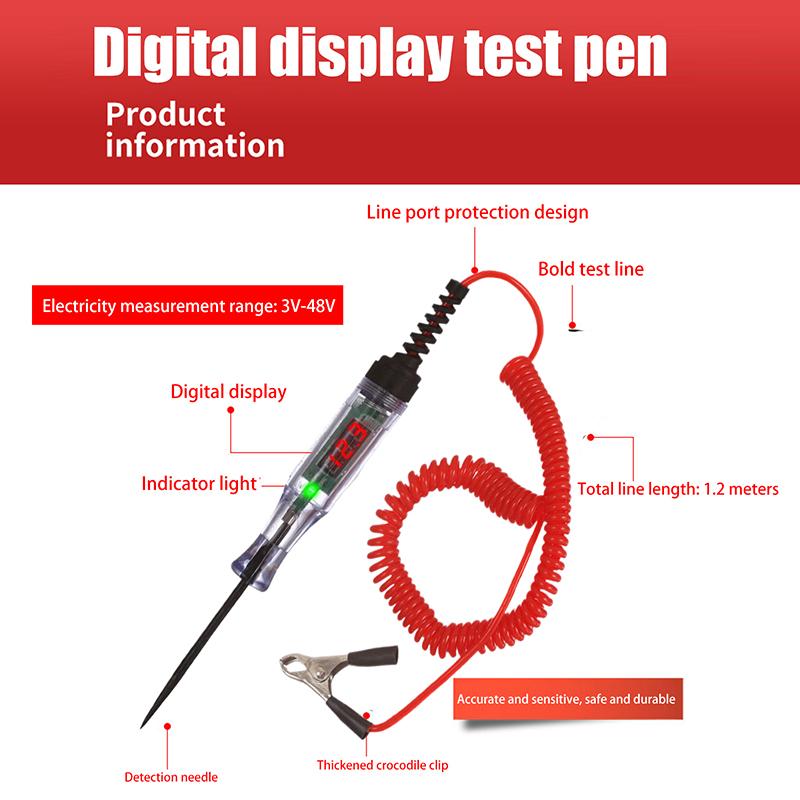 Сверхмощный 5-48 В Цифровой светодиодный тестер цепи с подсветкой, Автомобильная контрольная лампа Цифровой светодиодный тестер цепи
