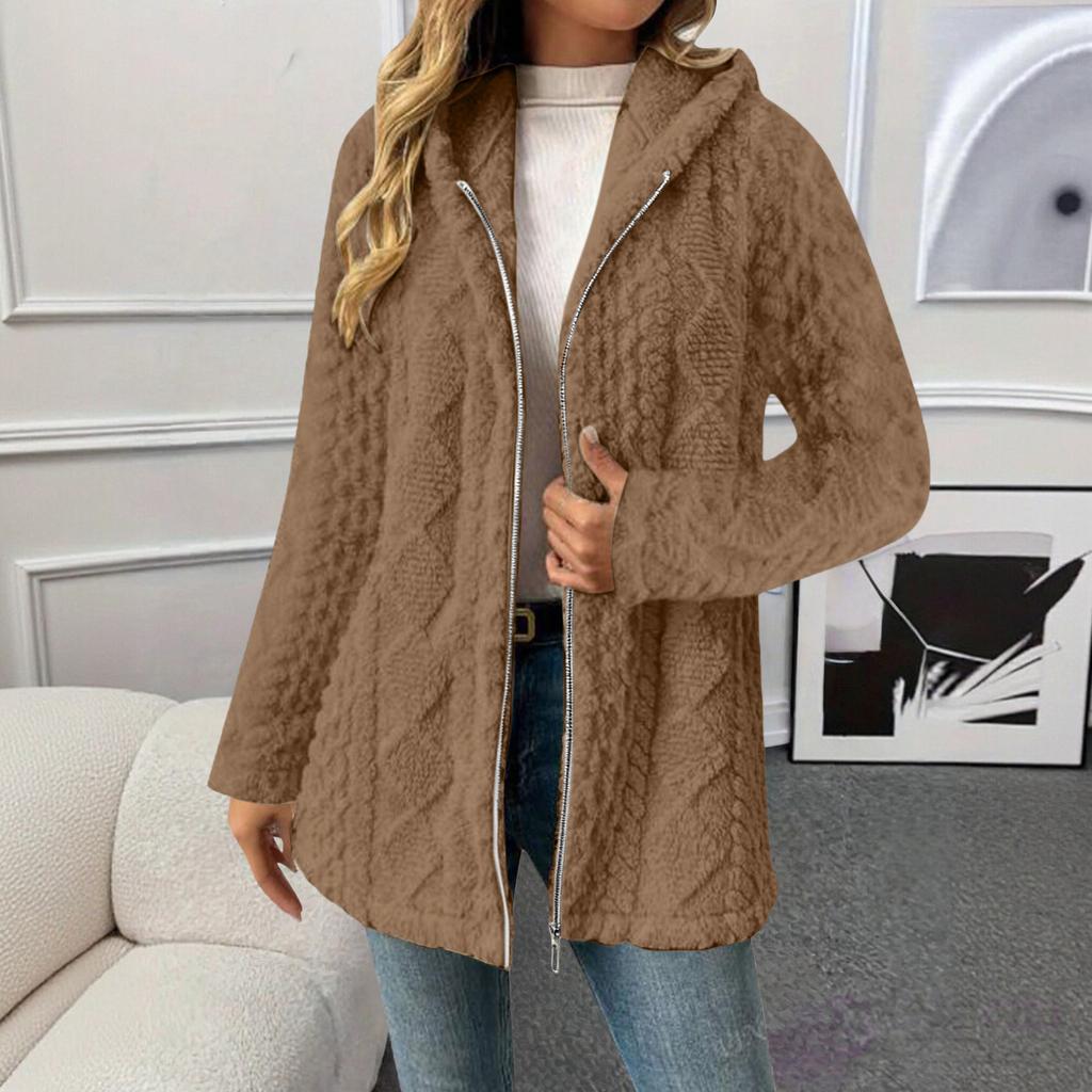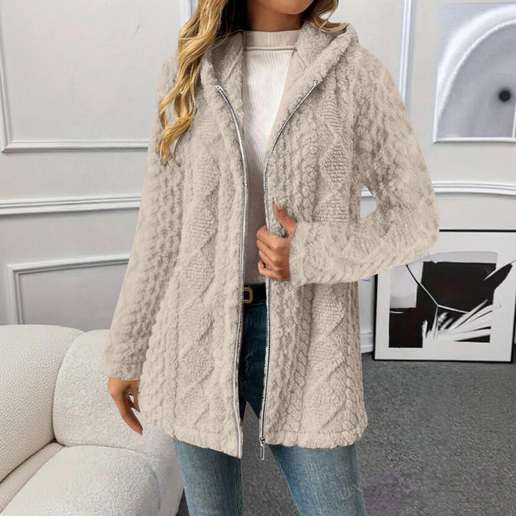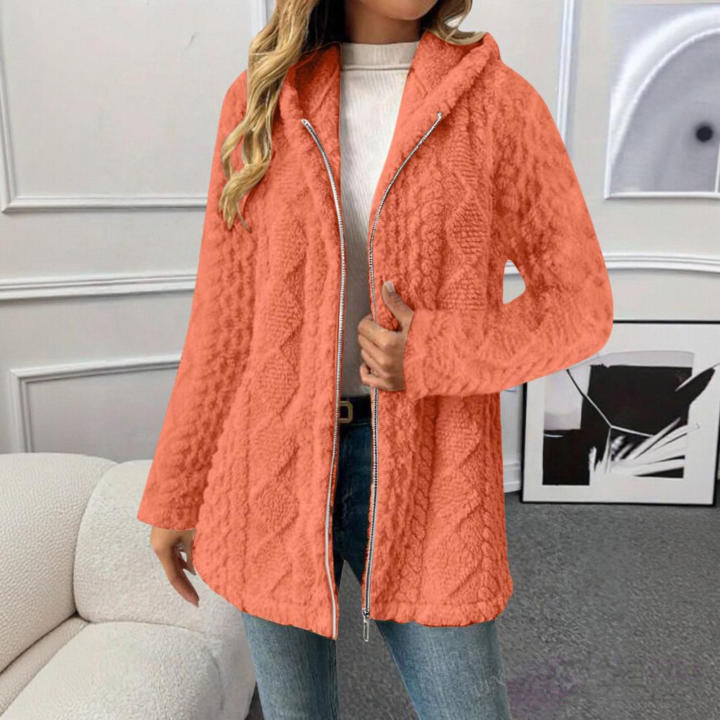 Женская модная однотонная плюшевая куртка с длинными рукавами, свободного кроя, с капюшоном, на молнии