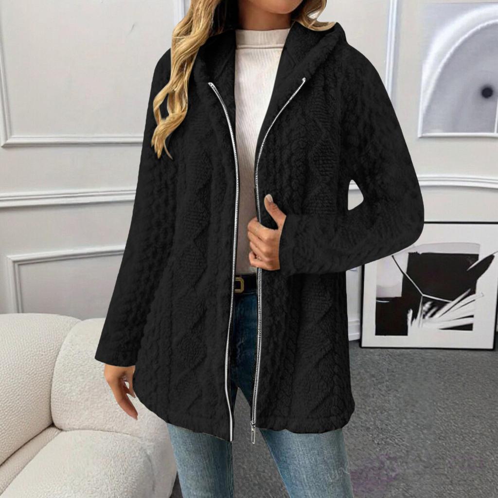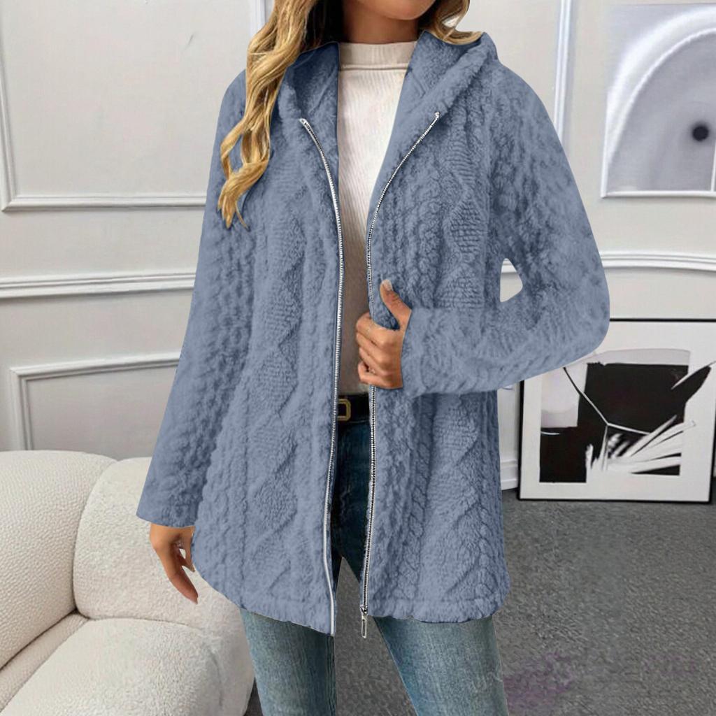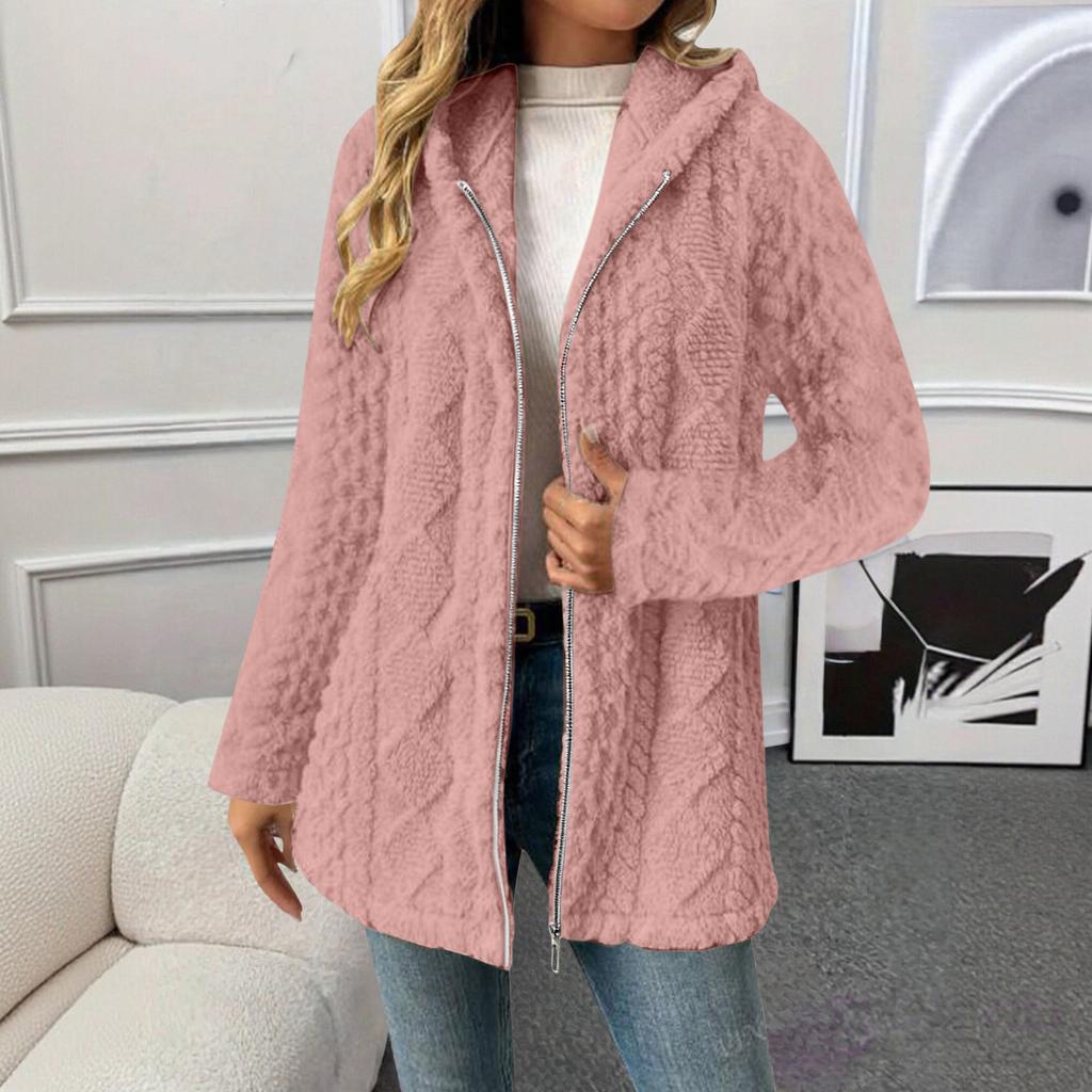 Женская модная однотонная плюшевая куртка с длинными рукавами, свободного кроя, с капюшоном, на молнии