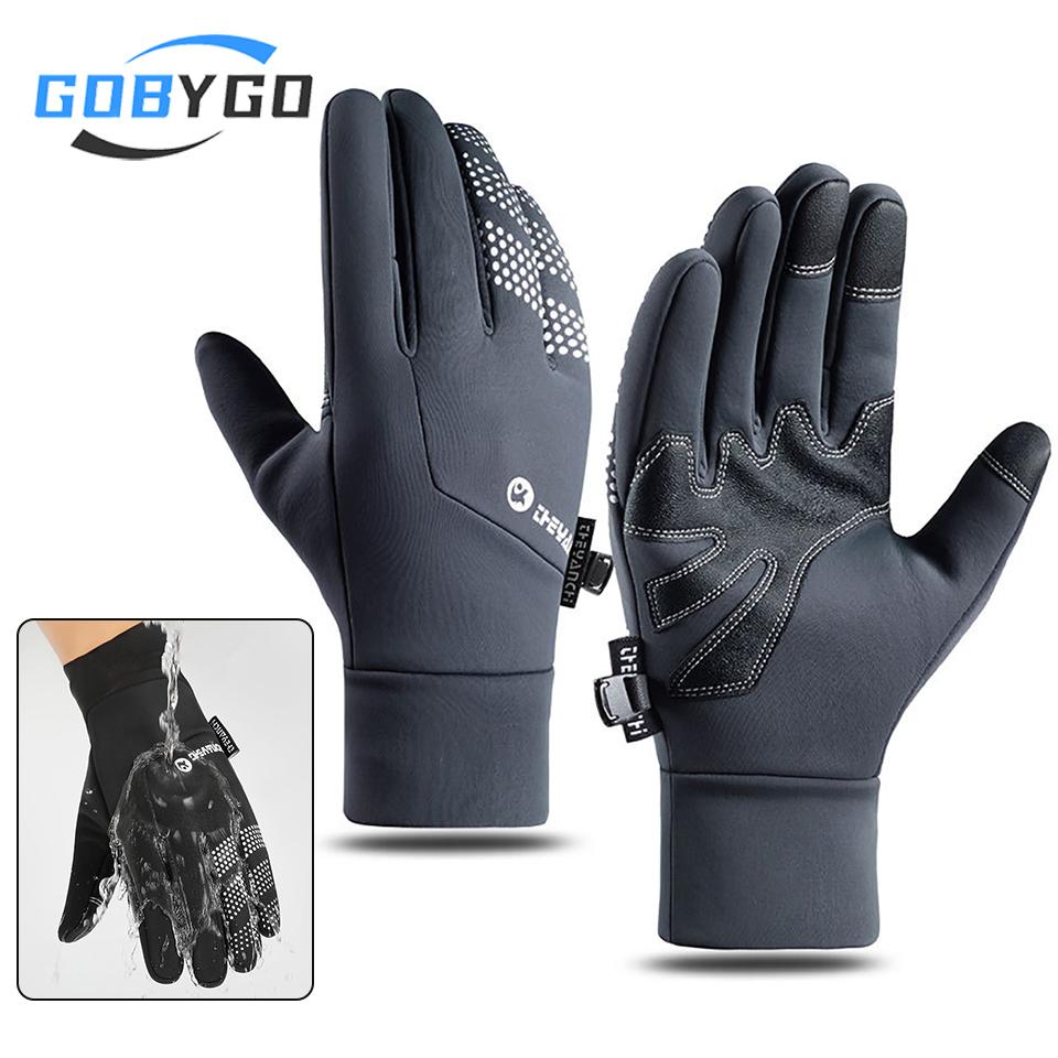 Gobygo Зимние ветрозащитные перчатки Водонепроницаемые Утепленные Велосипедные перчатки Теплые Противоскользящие Сенсорный экран На открытом воздухе Спорт Бег Мужчины Женщины