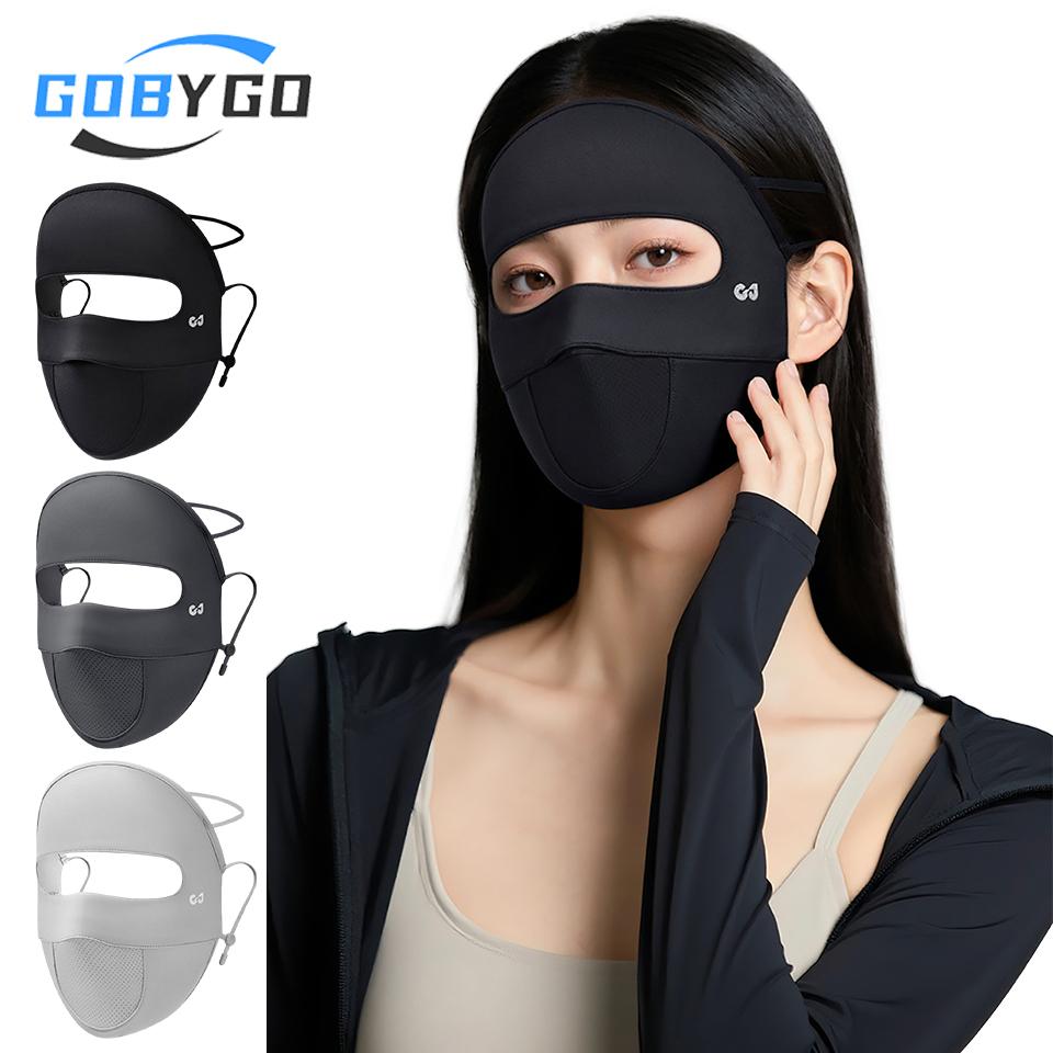 Gobygo 1Pcs Full Face Sunscreen Mask Breathable Uv Protection Ice Silk Cool Feeling Veil Outdoor Forehead Eye Protection Unisex