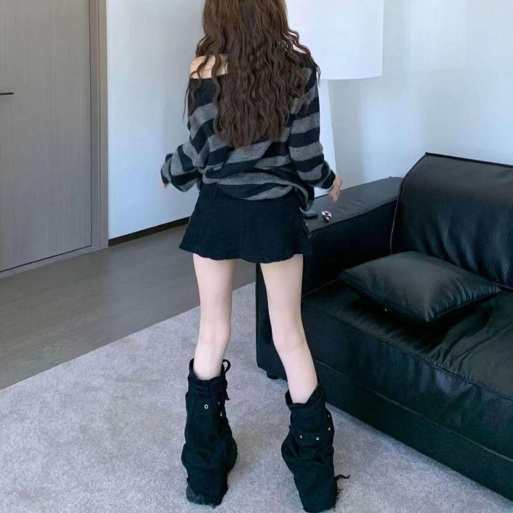 Панк Черный Деним Накладки на ноги Y2k Гетры на икры Носки Модный рукав для ног