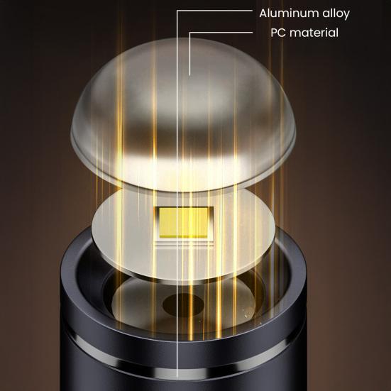 Crafted from durable aluminum alloy and boasting an IPX4 waterproof rating, this flashlight is built to withstand outdoor use even on rainy days. Stay prepared and light up your road with the versatile and reliable flashlight.