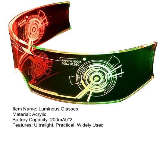 Ощутите сочетание эстетики киберпанка и передовых технологий в светодиодных очках со стильным футуристическим дизайном.. Светитесь в темноте и смело заявляйте о себе в моде, куда бы вы ни пошли.