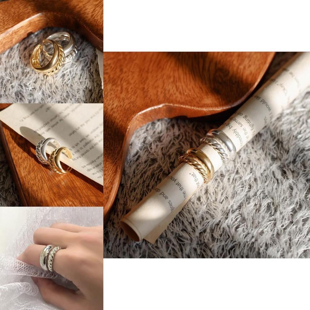 Элегантное кольцо из стерлингового серебра 925 пробы, двухслойное, с переплетением золотого и серебряного цветов, для унисекс-моды