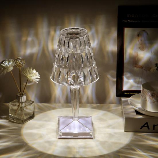 Настольная лампа Высокая Романтическая Светодиодная Акриловая Регулируемая Яркость Хрустальная Сенсорное Управление Атмосфера Ночь