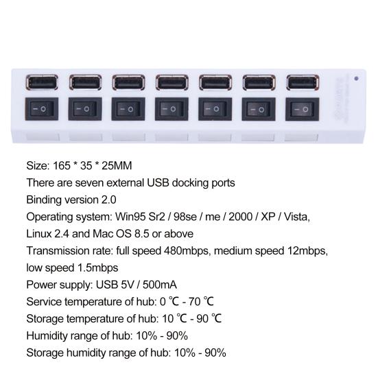 USB-хаб 7 универсальный бездрайверный высокопортовый многофункциональный эффективный высокоскоростной с переключателем