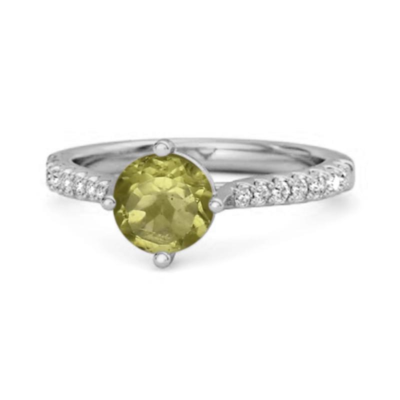 Peridot Classic Pavé Solitaire Ring - Sterling Silver