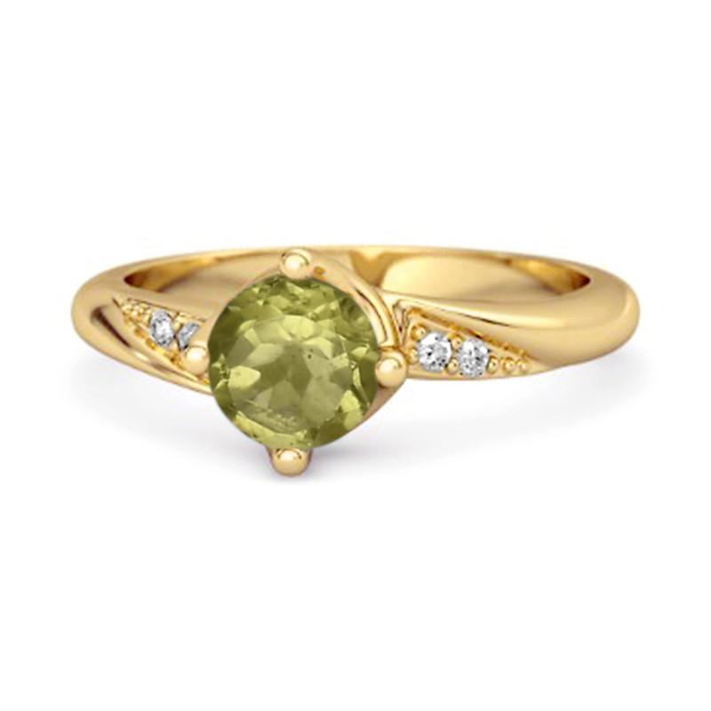 Peridot Classic Solitaire with Accent CZ Ring - Sterling Silver Gold Vermeil — купить товар онлайн с бесплатной доставкой по всему миру!