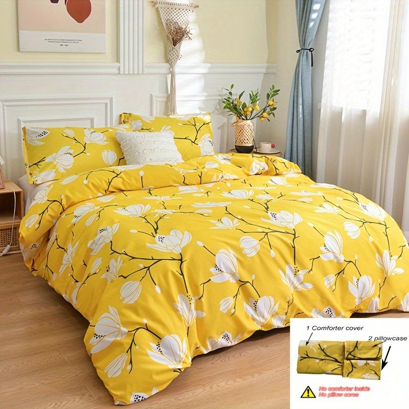 Комплект пододеяльника Желтый с цветочным принтом Постельное белье Мягкий Удобный Дышащий Пододеяльник Для Декора Спальни Гостевой Комнаты