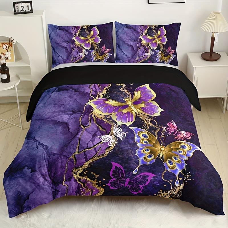 Fashion Classic Butterfly Flower Digital Print Bedding Set Soft Comfortable Duvet Cover For Bedroom Guest Room